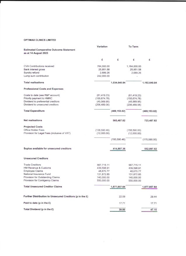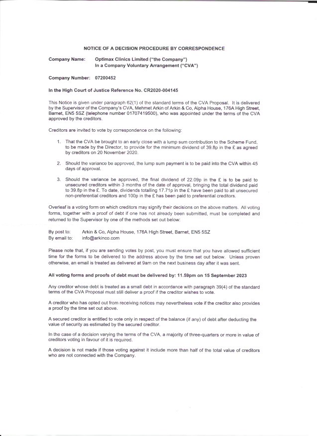 Full pdf here for download:Optimax CVA 15 Aug 2023 1 (name redacted)But here are the contents of the pdf.